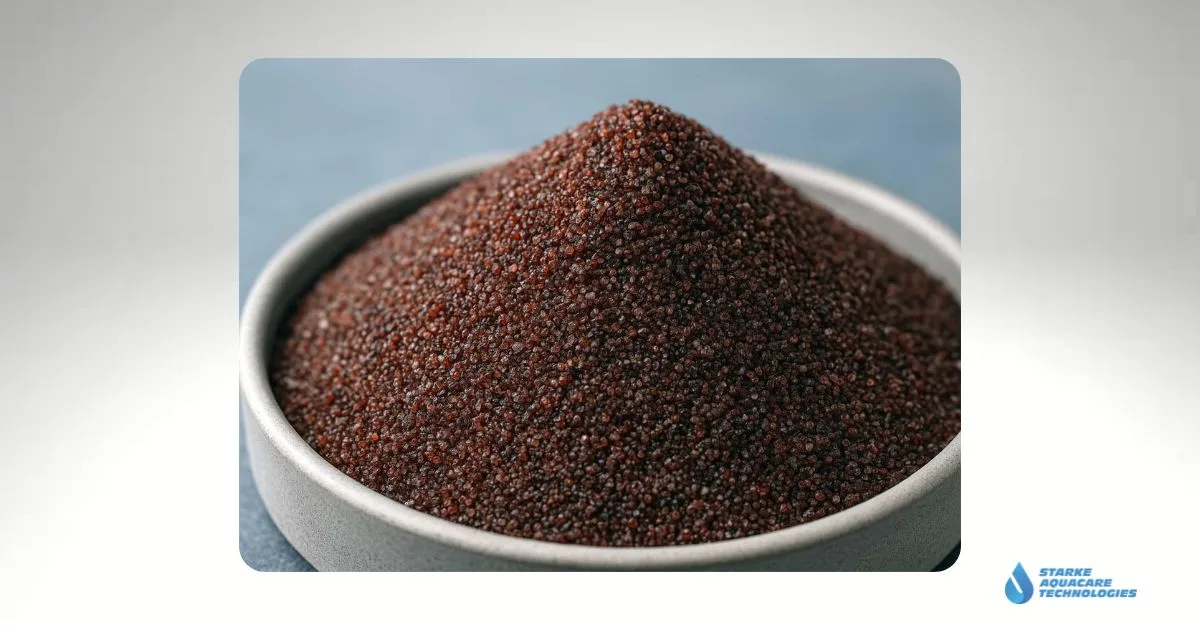Garnet sand is a naturally occurring, high-density mineral from the silicate family. It features an angular structure and a specific gravity of around 4.0 g/cm³, making it ideal for use in multimedia water filtration systems.